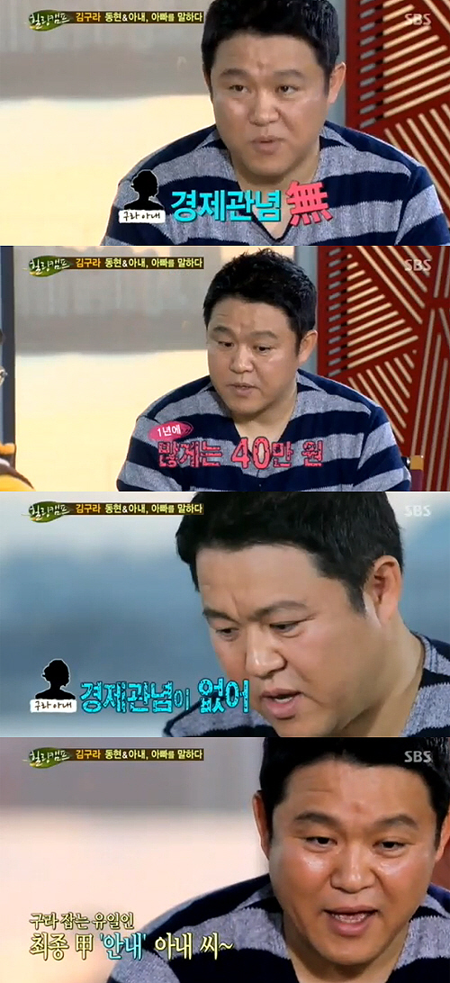 김구라는 "아내가 장점도 많고 동현이도 잘 키우지만 그런 쪽으로는 개념이 없다"고 밝혔다.
