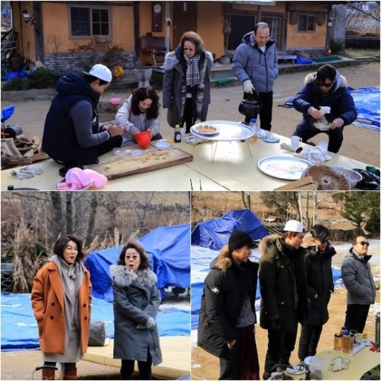 공개된 사진에는 이서진, 옥택연을 비롯해 게스트들이 집 앞 평상에 옹기종기 모여 도마와 맷돌, 각종 음식 재료들을 놓고 음식을 만들고 있다. 본격적인 겨울 날씨가 시작돼 모두들 두꺼운 옷을 걸치고 있지만, 하나같이 즐거운 표정으로 화목한 분위기를 자아내고 있다.