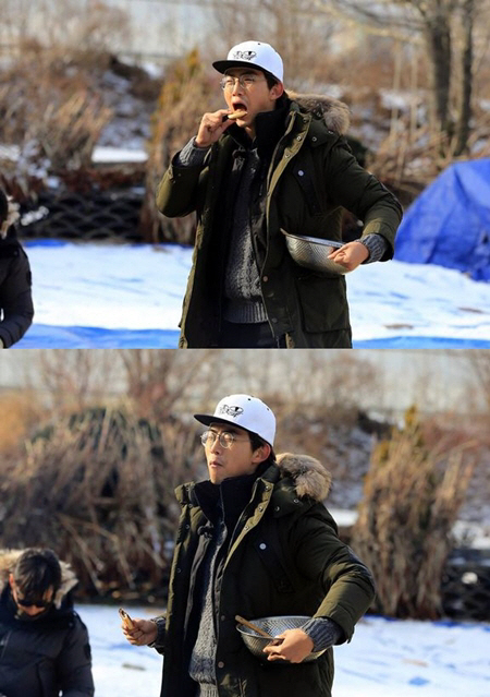 공개된 사진 속에는 안경을 낀 채 옥빙구로 빙의, 여기에 두꺼운 외투에 흰색 스냅백을 매치한 옥택연이 입을 크게 벌린 채 간식을 먹고 있는 모습이 담겨있다.