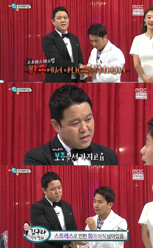 당시 김구라는 "나는 건강하다. 방송에서 아내를 욕하면서 스트레스를 풀었다"며 "아내가 보증을 서서 스트레스를 받았지만 1년 정도 돼 많이 털어냈다"고 웃으며 말했다.