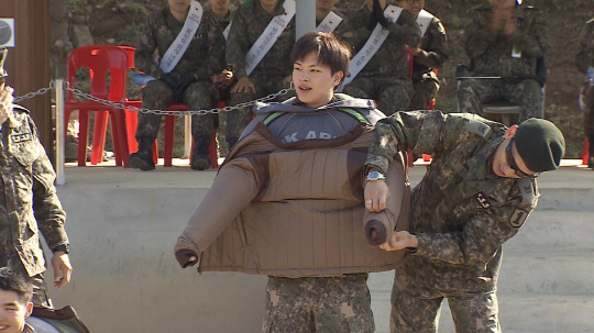 특히 '옷 많이 껴입기' 종목에 도전한 이병 육성재의 눈부신 활약이 기대를 모은다. 상의를 탈의한 맨 몸에서 군복들을 하나 둘 껴입기 시작한 육성재는 몸을 가누지 못할 정도로 엄청난 양의 군복을 껴입어 51개를 입었던 지난 기네스 보유자와 함께 불꽃 튀는 팽팽한 접전을 펼쳤다.