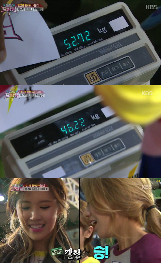 21일 방송된 KBS 2TV '출발 드림팀 시즌2'는 '걸그룹 천하장사' 편으로 펼쳐졌다.