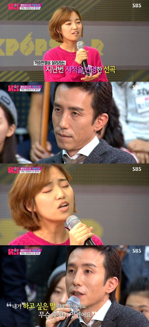 이날 지난 번 오디션 때 박진영 양현석에게 혹평을 받았지만 유희열의 와일드 카드로 살아남은 홍찬미가 무대에 섰다.
