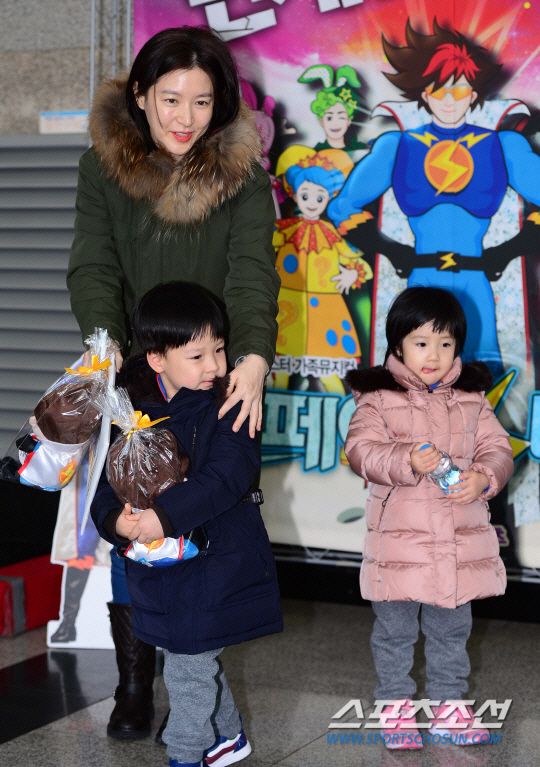 이영애는 이란성 쌍둥이 정승권, 정승빈 남매와 함께 23일 오후 서울 서초구 서초동 한전아트센터에서 열린 EBS의 가족뮤지컬 '스페이스 번개맨' 공연을 찾았다.