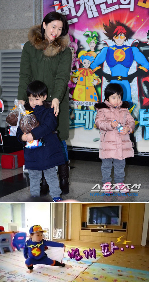 이영애의 만찬'에서 '번개맨' 의상을 차려입고 번개파를 쏘는 깜찍한 모습을 공개해 시선을 모았다.