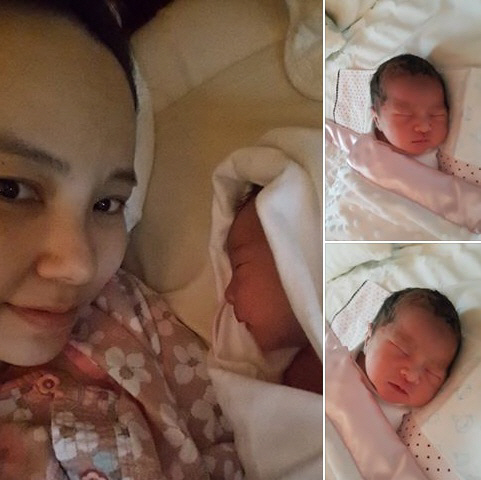 사진에는 딸을 품에 안고 행복한 표정을 짓고 있는 김지우의 모습이 담겨 있다.