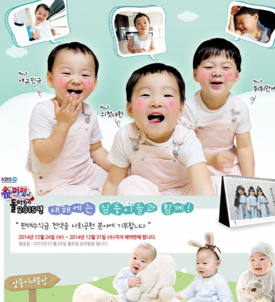 삼둥이 달력은 오는 24일부터 31일까지 예약 판매되며, 주문 수량을 파악 후 제작에 들어간다. 내년 1월 5일 이후 순차적으로 배송되며, 삼둥이 달력의 가격은 5500원이다.