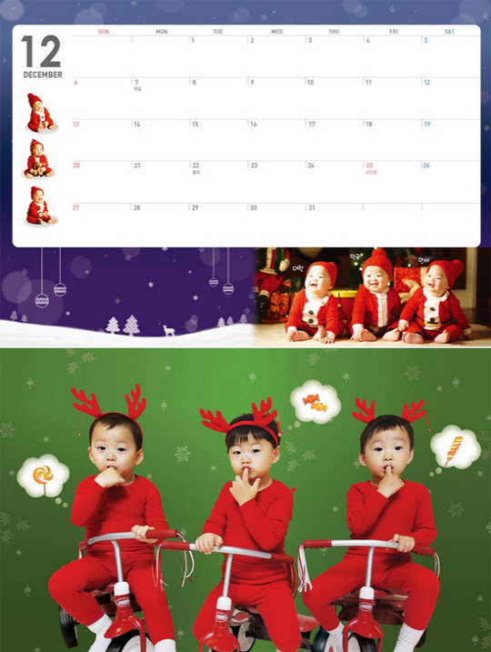 '삼둥이 달력'은 가로 23cm, 세로 16.2cm의 탁상용 달력으로 오는 24일부터 31일까지 온라인 마켓을 통해 예약판매를 실시할 예정이다. 내년 1월 5일부터 순차 발송된다.