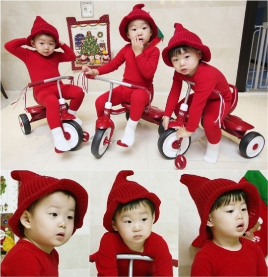 슈퍼맨이 돌아왔다'에서 삼둥이는 귀여운 D라인이 살아있는 빨간 내복 풀 세트와 루돌프 머리띠, 털모자로 앙증맞게 치장한 채 크리스마스 분위기를 자아냈다.
