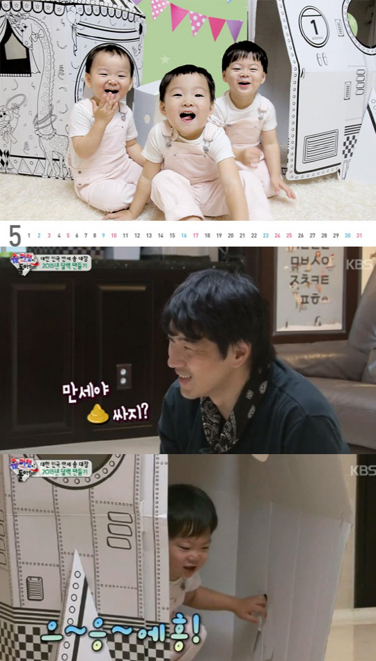 송일국 삼둥이 달력, 5월 사진 험난한 촬영…만세 종이 우주선에 '응가'