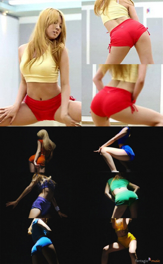영상 속에서 멤버 별로 각각 다른 컬러의 브라 탑과 초미니 트레이닝 팬츠를 입고 신곡 '위글위글'에 맞춰 섹시한 안무를 선보이고 있다.