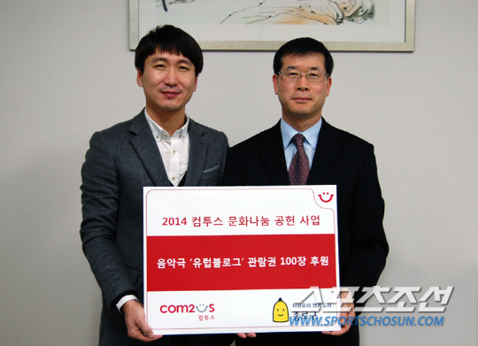 모바일 게임사 컴투스는 서울 종로구청 희망복지지원팀을 방문해 문화나눔 사회공헌 활동 일환으로 음악극 '유럽블로그' 공연티켓 100장을 전달했다고 26일 밝혔다.