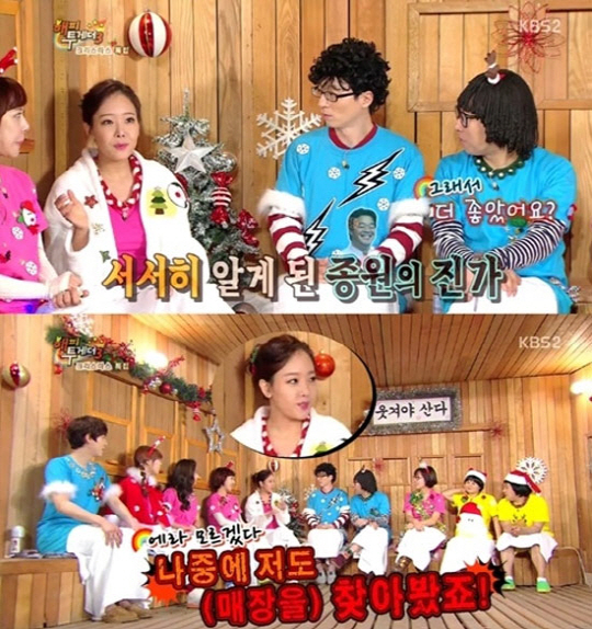 25일 밤 방송된 KBS2 '해피투게더 시즌3'은 MC 유재석, 박명수, 박미선, 김신영, 조세호 진행 아래 게스트 소유진, 슈(유수영), 김소은, 카라 허영지가 출연해 '크리스마스 특집'으로 꾸며졌다.