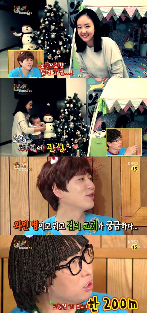 자신의 집에서 선물을 준비하는 소유진은 중간중간 우는 아이를 달래고자 모습을 감추기도 했다. 이때 출연자들은 선물을 준비하는 소유진이 아닌 그 뒷배경에 관심을 나타내 재미를 더했다. 특히 규현과 유재석은 "집이 크다. 멀리 간다", "복도가 길다", "거의 탄광 수준이다"는 등의 집의 크기에 관심을 보였다.
