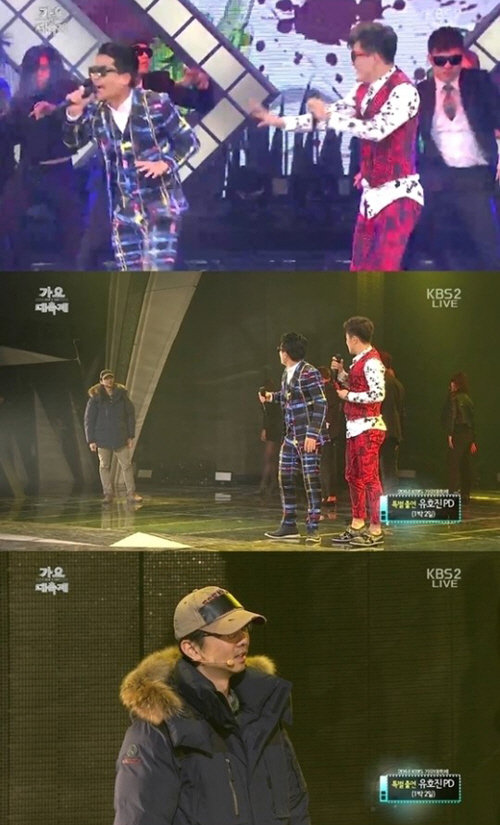 그러나 마지막에 '1박2일' 유호진 PD가 나타나 "여기서 뭐 하시는 거냐. 우리 날씨 추울 때 바짝 당겨야 하는데 뭐하는 거냐. 녹화하러 가겠다"며 두 사람을 강제로 무대에서 끌어 내려 웃음을 자아냈다. <스포츠조선닷컴>