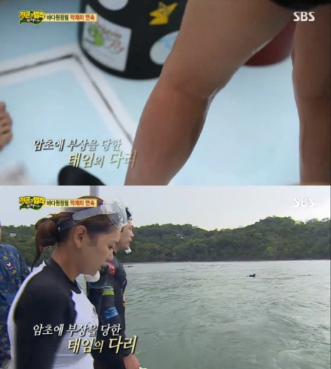 특히 물 밖으로 나온 이태임은 "난 바위에 부딪혔어"라며 심한 바다 너울에 휩쓸려 암초에 부딪혀 다리가 다치는 부상을 입은 사실을 알려 안타까움을 자아냈다. <스포츠조선닷컴>
