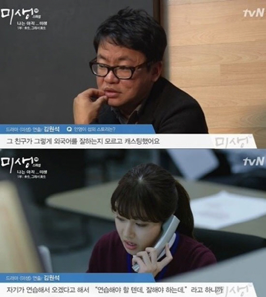 26일 방송된 tvN 금토드라마 '미생' 스페셜 '나는 아직..미생' 1부에서는 김원석 PD가 강소라의 영어 실력에 대해 언급했다.