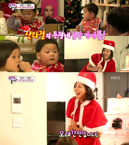 이날 방송에서는 야노 시호가 삼둥이를 위해 산타 복장을 하고 깜짝 등장해 시선을 사로잡았다. 산타 복장에도 늘씬한 몸매를 드러낸 야노 시호는 송일국과 삼둥이에 "안녕하세요"라고 반갑게 인사했다.