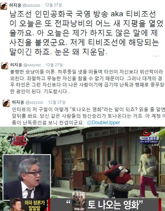 앞서 이 매체는 영화 '국제시장'을 분석하면서 허지웅이 이 영화에 대해 '토 나오는 영화'라고 발언했다는 소식을 자막과 함께 전했다.