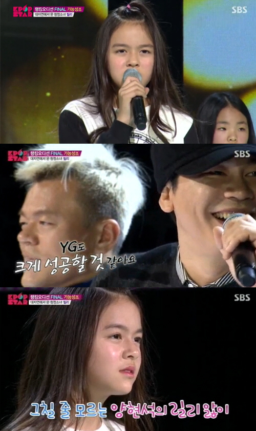 또 양현석은 "지금까지 봤던 이 연령대의 친구 중에서 'K팝스타'에서 본 또래 참가자들 중에서 단연 1등이다. 솔직히 이야기하면 앞으로 10년간 못 볼 것 같다. YG로 오는 수많은 연습생이나 제작하는 동안에도 못 볼 것 같은 대단한 재능을 지녔다"라고 극찬했다.