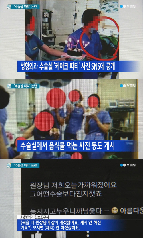 서울 강남의 한 유명 성형외과 직원이 수술 도중 케이크를 놓고 파티를 벌이고, 수술실에서 셀카를 찍는 등의 모습을 SNS에 공개해 비난이 들끓고 있다.
