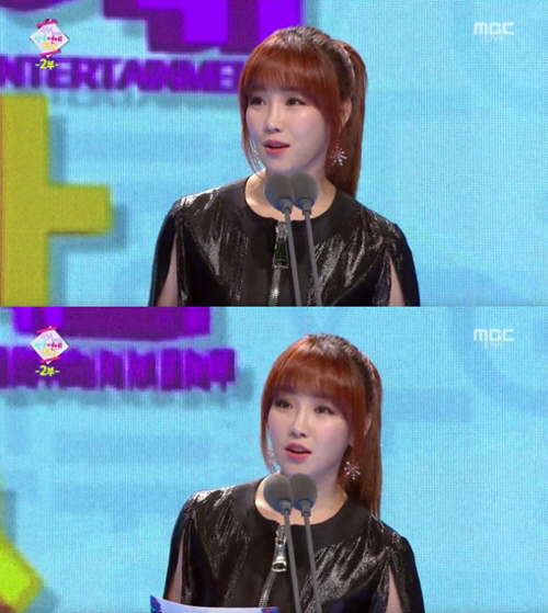 지난 29일 서울 상암동 MBC 신사옥에서 열린 '2014 MBC 방송연예대상'에서는 '뉴스데스크' 앵커로 이름을 알린 MBC 권재홍 부사장과 '왔다! 장보리'의 '연민정' 이유리가 시상자로 나섰다.
