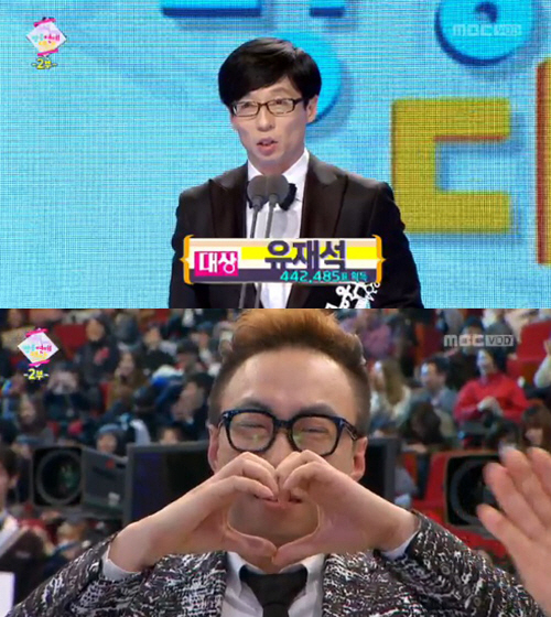 유재석은 29일 서울 마포구 상암동 MBC 신사옥에서 열린 '2014 MBC 방송연예대상' 시상식에서 영예의 대상을 수상했다.