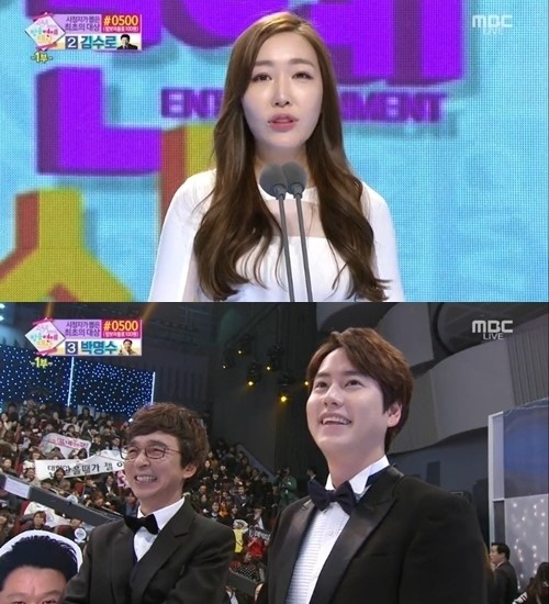 이어 그는 "알고 보면 가장 독한 웃긴 김국진, '라디오스타'의 기둥이자 없어선 안 될 윤종신, 다시 태어나도 이런 성격이면 결혼하겠다는 생각이 드는 김구라, 규현은 사실 일반인 여자를 좋아한다고 알려졌는데 1등 하고 바뀌었다고 한다. 스타도 좋아한다고 하니까 많은 관심 부탁드린다"는 소감과 함께 "관둔 지 꽤 됐지만 '무한도전' PD님과 멤버들 감사하다. 특히 노홍철이 고구마를 나르다가 넘어질 때가 기억이 난다. 그리고 형돈 오빠의 고백을 거절했던 것은 미안하다고 말하고 싶다"는 이야기를 했다.