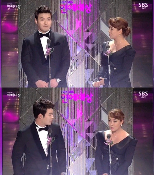 이날 박병호 선수와 김원희는 '2014 SBS 연예대상' 베스트 팀워크상 시상자로 무대에 올랐다.