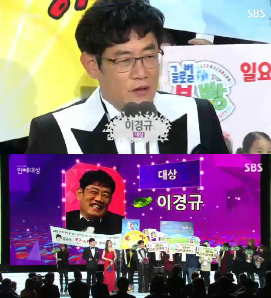 마지막으로 이경규는 "딸 예림이, 집사람, 애완견들과 같이 기쁨을 나누고 싶다. 항상 초심으로 돌아가려 노력하고 있다. 하지만 초심으로 돌아간다는게 힘들더라"면서 "그렇지만 이 상을 받은 계기로 초심으로 돌아가 신인의 자세로 후배들과 경쟁하며 치열하게 살아보겠다. 내년엔 내 딸과 함께 다시한번 대상에 도전하겠다"고 말했다.