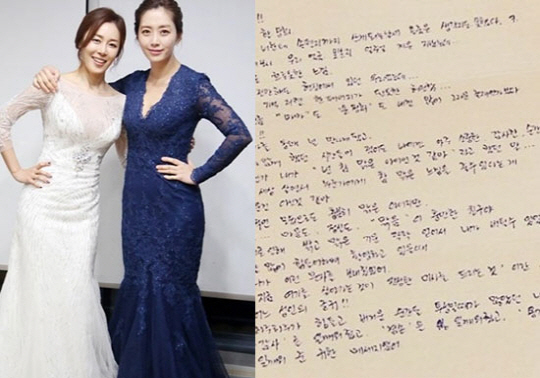 송윤아와 문정희의 우정이 빛나는 시상식으로 관심을 모은 가운데, 최근 송윤아가 문정희에게 보낸 손편지가 재조명되고 있다.
