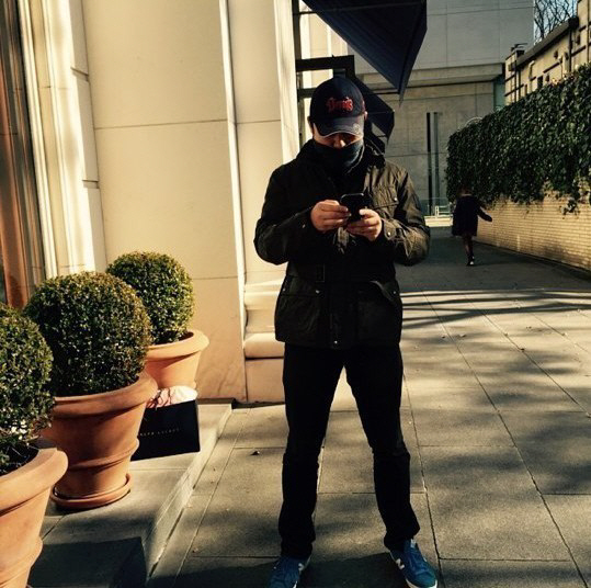 사진에는 머플러와 모자로 얼굴을 가린 김구라가 휴대폰을 사용하는 모습이 담겨 있다. 또 김동현은 "특별상", "내차례"등의 글을 덧붙이기도 했다.