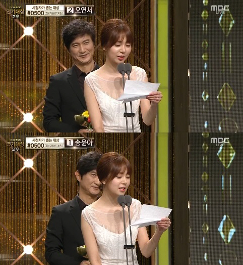 이날 불참한 최민수를 대신해 '오만과 편견'에서 함께 호흡을 맞추고 있는 배우 백진희가 시상대에 올랐다.