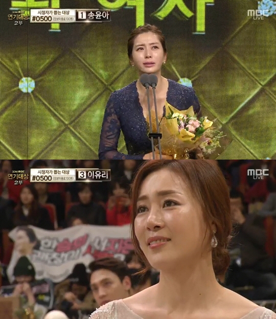 끝으로 송윤아는 "문정희 씨가 없었다면 '마마'에서 한승희라는 캐릭터가 그렇게까지 잘 보일 수는 없었다. 진심이다"라며 "문정희 씨한테 너무 감사하고, 문정희 씨가 이 상 못 받아서 너무 속상하다"라고 소감을 밝혔다.