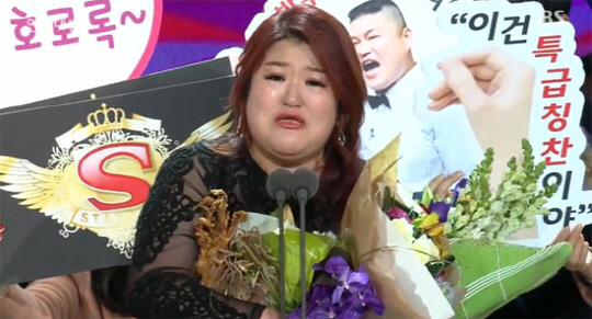 수상 소감에서 이국주는 "올해 정말 SBS에서 받은 게 너무 많다"며 자신이 출연한 '런닝맨', '스타킹', '룸메이트' 제작진에 고마운 마음을 전했다.