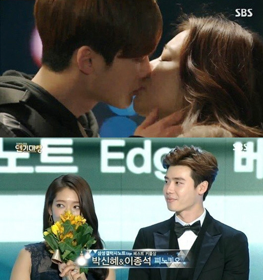 이종석 박신혜는 베스트 커플상까지 수상했다. 무대에 오른 두 사람을 향해 이휘재는 "키스신을 찍을 때 NG가 나지 않았냐?"고 물었고, 박신혜는 "NG는 안 났다. 예쁜 화면이 나오는데 신경 썼다"고 대답했다.
