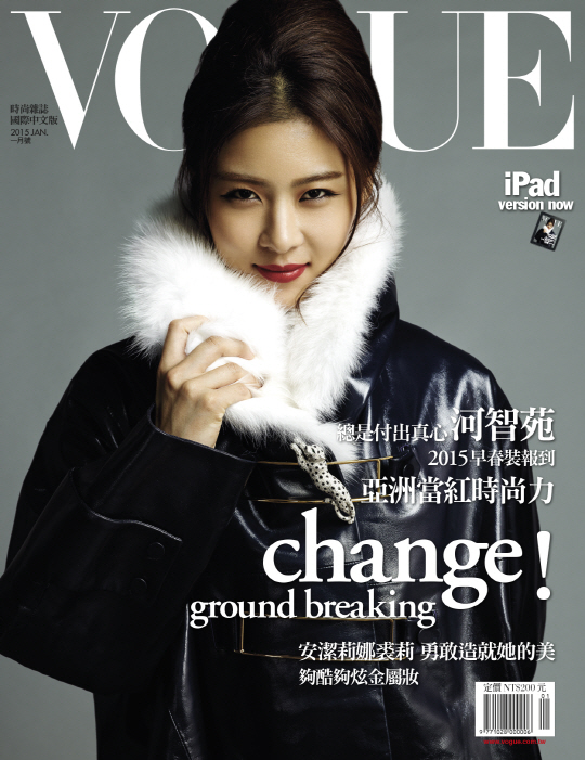 한류 스타 하지원이 2015년 1월 패션잡지 '보그' 대만판 표지를 장식했다.