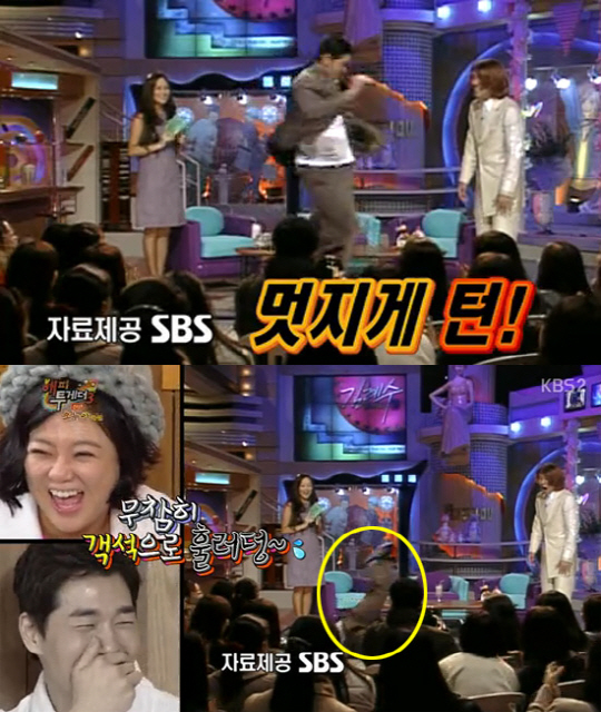 이 화면을 지켜보던 유지태는 "한때 '무릎팍 도사' 나갔을 때 강호동씨가 '유지태 씨는 넘어져서 떴다'고 하더라. 일부러는 아니고 돌다보니 방청객 앞으로 넘어졌다"고 당시 상황을 설명했다.