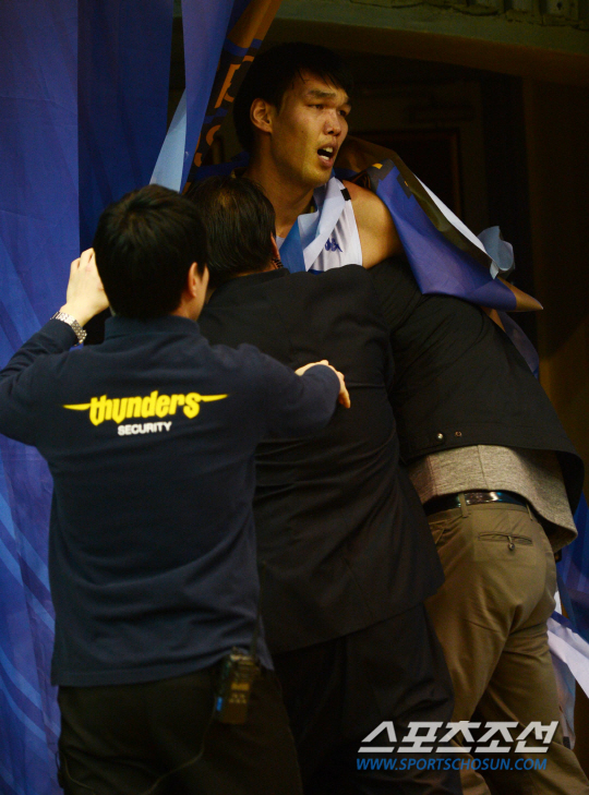 하승진은 나가다 말고 돌아오는 제스처를 했고, 구단 관계자와 안전요원들이 달려들어 말렸다. 그 과정에서 목재로 만든 설치물이 흔들리기도 하는 일촉즉발의 상황이 되기도 했다.