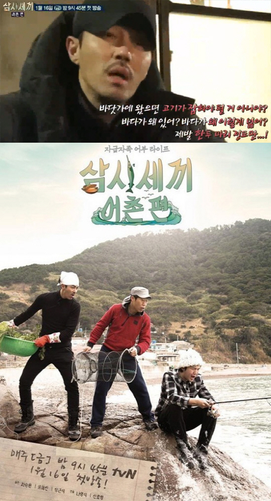 '삼시세끼-어촌편'은 도시에서 쉽게 해결할 수 있는 '한 끼' 때우기를 낯선 어촌에서 가장 어렵게 해 보는 야외 버라이어티 프로그램으로, 차승원, 유해진, 장근석이 출연한다. <스포츠조선닷컴>
