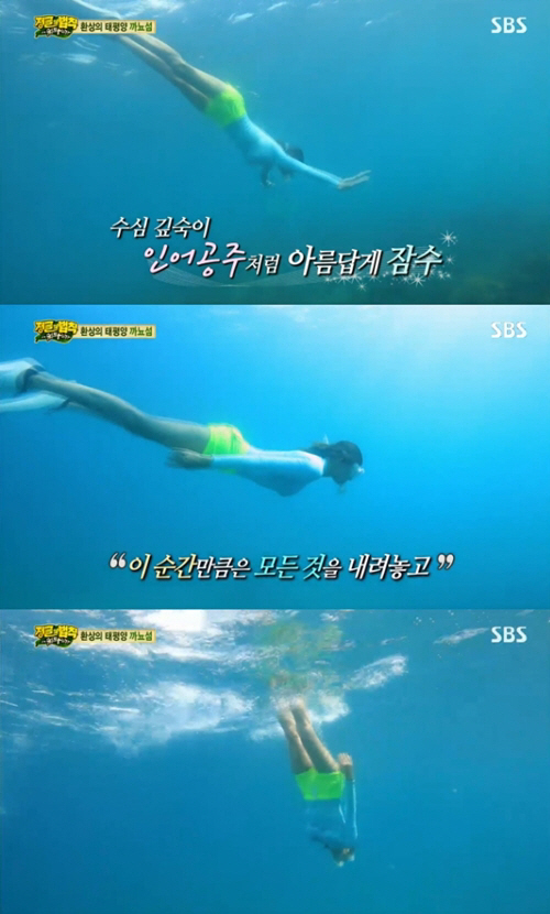 그동안 바다 수영에 자신감을 보인 이태임은 인어공주 같은 자태로 입수했다. 동화 속 주인공이 된 듯 우아한 자태로 바다를 누비는 이태임의 모습이 시선을 사로잡았다.