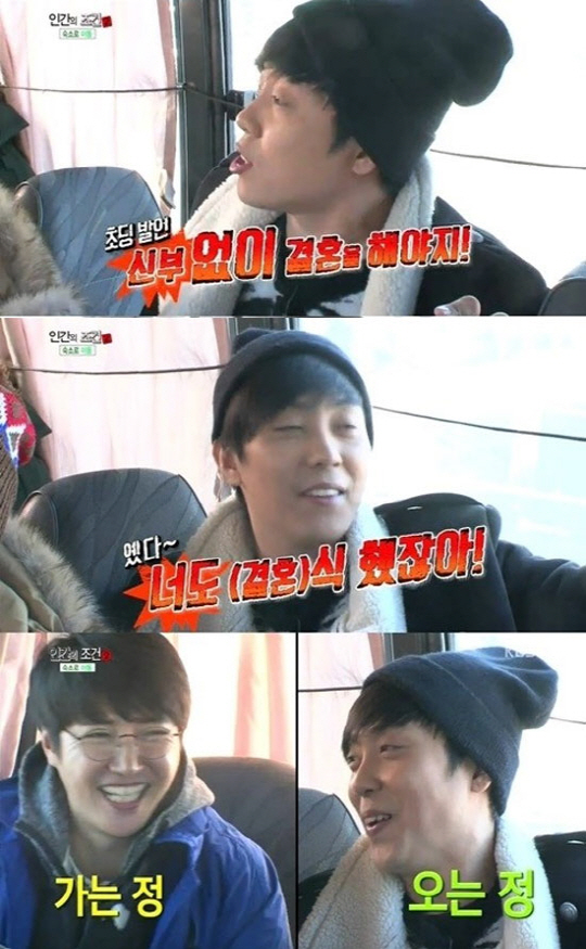 이에 은지원은 "그럼 신부 없이 결혼해라"라고 초딩발언을 서슴지 않았고, 윤상현 역시 지지않고 "너도 식 했잖아"라고 외쳐 웃음을 더했다.