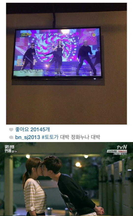 지난 3일 박서준은 자신의 인스타그램을 통해 "토토가 대박 정화누나 대박"이라는 글과 함께 '토토가'에 출연한 엄정화의 TV 속 모습을 게재했다.
