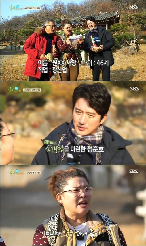 이날 정준호는 MC 이영자와 임지호를 위해 복조리를 준비했다. 특히 이영자에겐 의문의 쪽지를 함께 건넸다. 쪽지에는 한 남성의 신상명세서가 적혀 있었고, 정준호는 "꼭 필요한 선물일 것 같다. 성실하고 이영자씨와 잘 어울릴 것 같은 친구"라고 설명했다. 이영자는 "이 나이면 연하라서 좋다"고 답했다. 그는 "최고의 선물이 아닐까"라며 46세 광산업을 하고 있는 자신의 지인과 소개팅을 준비했다.