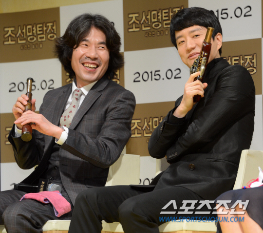 영화 '조선명탐정2-사라진 놉의 딸'의 제작발표회가 5일 압구정CGV에서 열렸다. 오달수와 김명민이 망원경과 총을 들고 포즈를 취하고 있다. '조선명탐정2'는 조선 경제를 뒤흔드는 불량 은(銀) 유통사건 배후에 있는 거대한 범죄조직의 실체를 파헤치기 위한 조선명탐정 김민과 서필의 고군분투를 그린 탐정극이다, 김명민, 오달수, 이연희가 가세했고 전작에 이어 김석윤 감독이 메가폰을 잡았다. 오는 2월 개봉한다. 허상욱 기자 wook@sportschosun.com/2015.01.05/