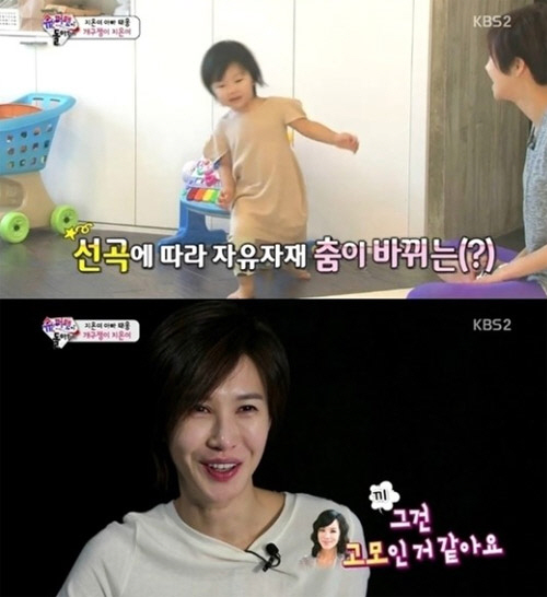 이날 엄태웅과 윤혜진 부부는 딸 지온을 소개했다. 엄태웅은 딸 지온에 대해 "객관적으로 봤을 때 예쁘장한 게 아니란 건 인정하는데, 굉장히 매력 있고 사랑스럽고 똑똑하고 밥도 잘 먹는다. 흥도 많고 장난기도 많다"고 딸 자랑을 늘어놓았다.