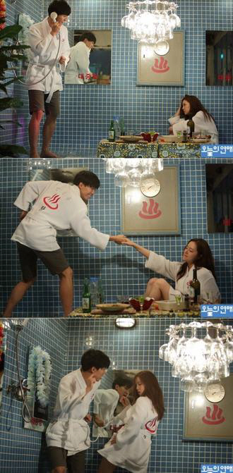 최근 영화 '오늘의 연애' 측은 목욕 가운을 입은 이승기와 문채원이 춤을 추는 모습이 담겨 있는 스틸 사진을 공개했다.