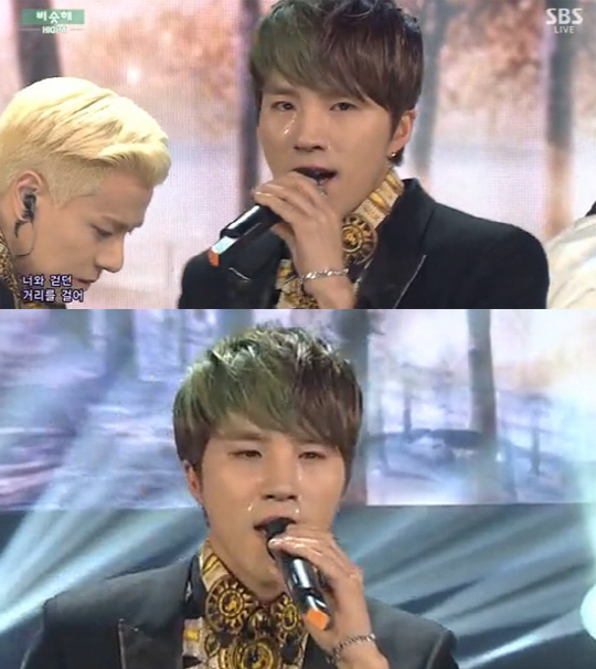 그런데 이날 무대에서 리더 김성구가 노래를 부르는 내내 눈물을 흘리는 모습이 포착됐다.