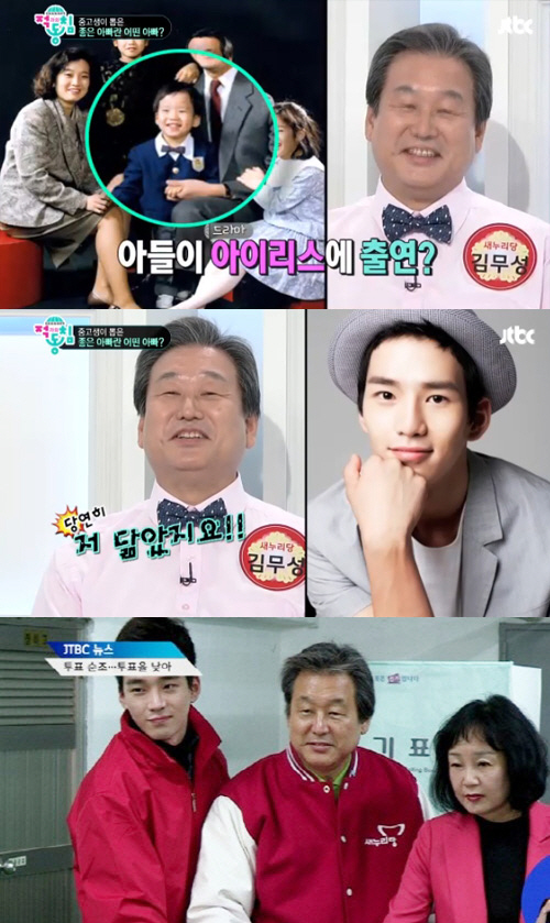 이날 김무성 의원의 사진을 본 강용석은 "사진 속 아들이 '아이리스'에 나온 그 아들이냐"고 물었고, 김무성 의원은 이를 인정했다.