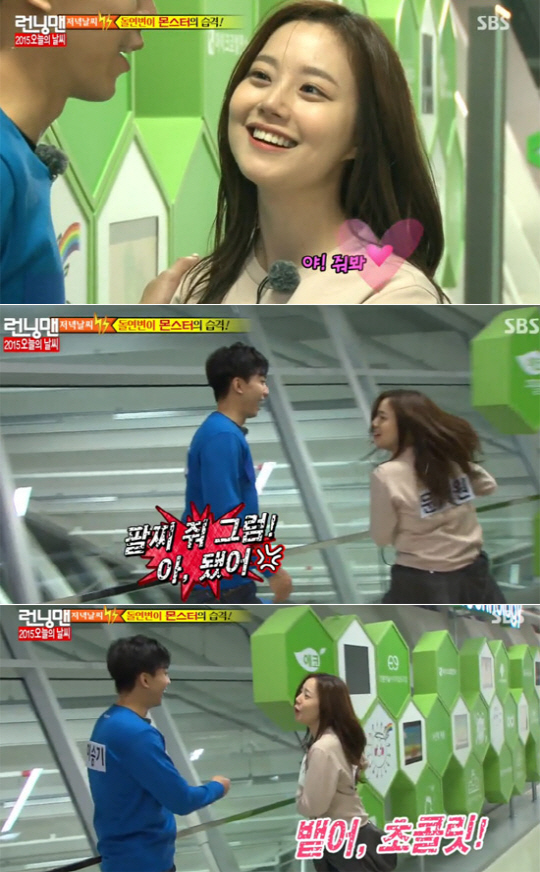 이에 문채원은 이승기를 향해 환하게 웃으며 "야 줘봐"라며 애교로 은근슬쩍 팔찌를 빼앗아갔다. 그러면서 문채원은 몬스터 유인을 위해 갖고 있던 초콜릿을 이승기의 입에 넣어줬다.